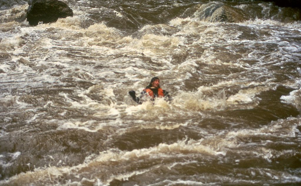 I unintentionally swam the entire length of the Class IV Montgomery Rapid, in winter and without a wetsuit, after falling out of the raft I was captaining at the head of the rapids. This shot was taken with a telephoto lens just as I resurfaced from the bottom of a whirlpool.